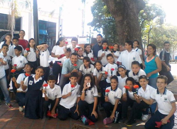 Niños y niñas de la Escuela Básica Grupo Escolar Estado Guárico escribieron cuentos y poemas tomando como referencia el tema Techos de Cartón y elaboraron claveles rojos para Alí, bajo la coordinación del colectivo “Patacaliente”.