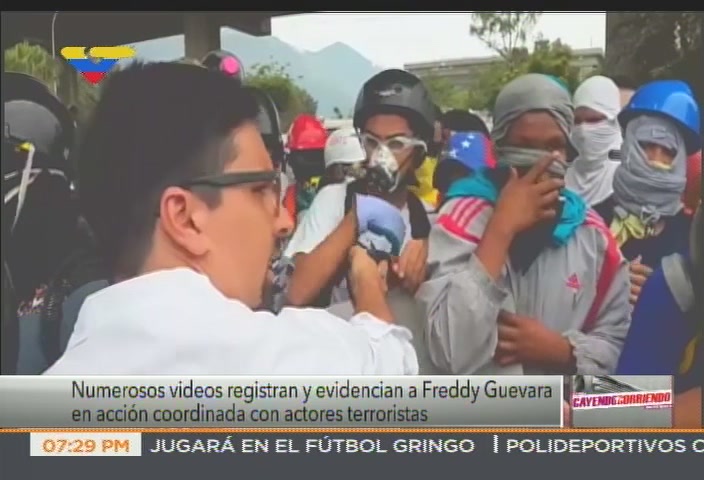 Videos difundidos por medios digitales de la oposición este miércoles muestran al diputado Freddy Guevara, autoproclamado vicepresidente de la Asamblea Nacional, conversando y dando apoyo a grupos de encapuchados que este miércoles confrontaron de forma violenta a efectivos de la Guardia Nacional Bolivariana usando bombas molotov y otros artilugios. El periodista Boris Castellano de VTV también grabó al alcalde del municipio Chacao, Ramón Muchacho (del partido Primero Justicia), caminando por Altamira sur a pocos metros de un grupo de encapuchados, quienes llevaban una gavera llena de bombas molotov.