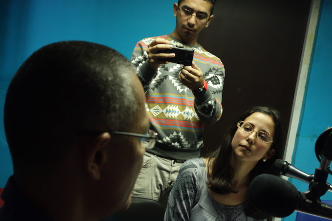 La directora de la oficina de Gestión comunicacional del MPPC, María Gabriela Rodríguez y el coordinador de Alba Ciudad, Jhosy Coronado, junto al ministro, fueron los encargados de estrenar el estudio.